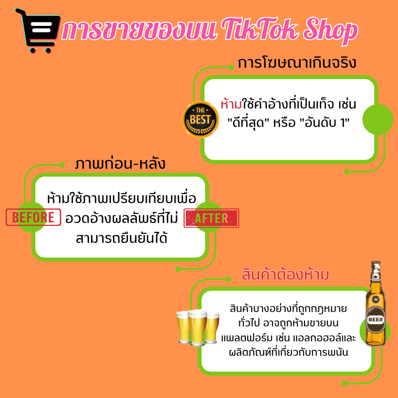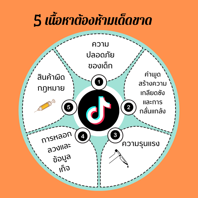 สรุปโดยย่อ คุณควรหลีกเลี่ยง เนื้อหาที่เกี่ยวข้องกับความรุนแรง, การกลั่นแกล้ง, คำพูดที่สร้างความเกลียดชัง, การละเมิดลิขสิทธิ์, การฉ้อโกง, การกล่าวอ้างเกินจริงในการขายสินค้า, และเนื้อหาสำหรับผู้ใหญ่ที่อาจผิดต่อหลักเกณฑ์โดยรวมของแพลตฟอร์ม
