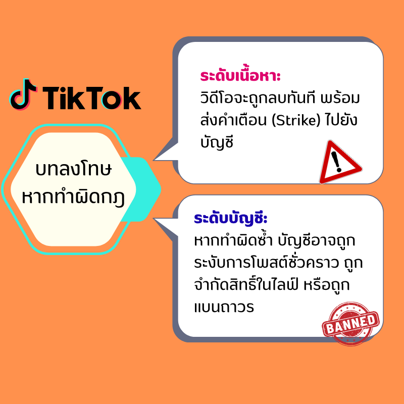 เมื่อเนื้อหาถูกระบุว่า "ละเมิดแนวทางชุมชน" TikTok จะดำเนินการดังนี้: