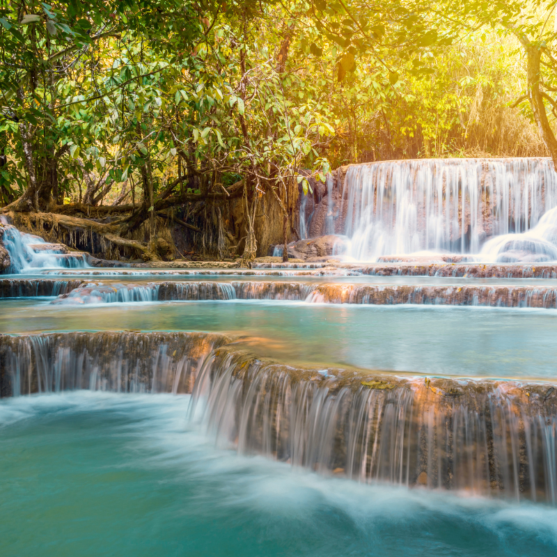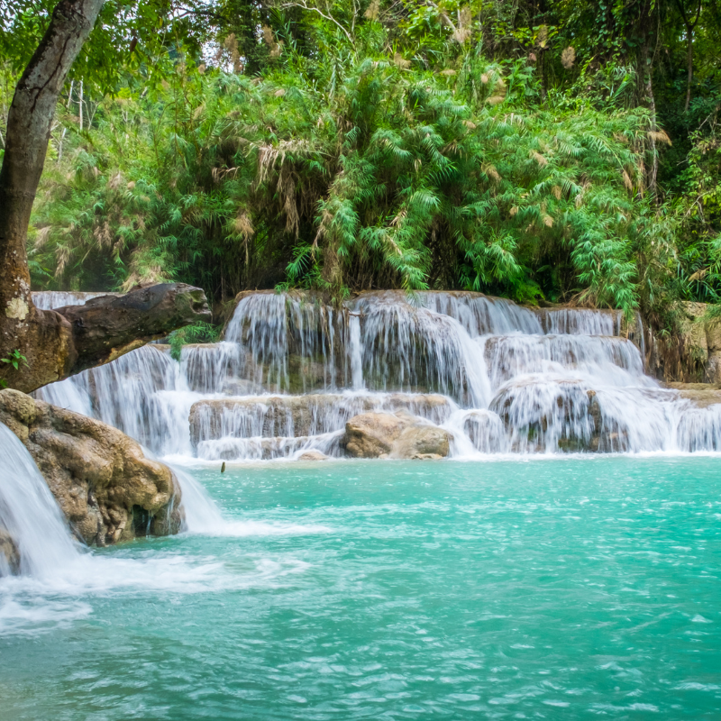 หากพูดถึงสถานที่ท่องเที่ยวธรรมชาติที่สวยงามที่สุดในลาว น้ำตกตาดกวางสี (Kuang Si Waterfall) ต้องติดอันดับต้นๆ อย่างแน่นอน ด้วยความสูงประมาณ 70 เมตร และชั้นน้ำตกที่ไหลลดหลั่นลงมาเป็นชั้นๆ ทำให้ที่นี่กลายเป็นสวรรค์ของนักท่องเที่ยวที่รักธรรมชาติ ความเขียวขจีของป่าไม้ น้ำใสสีฟ้าเทอร์ควอยซ์ และอากาศบริสุทธิ์ทำให้ทุกคนที่มาเยือนรู้สึกประทับใจไม่รู้ลืม