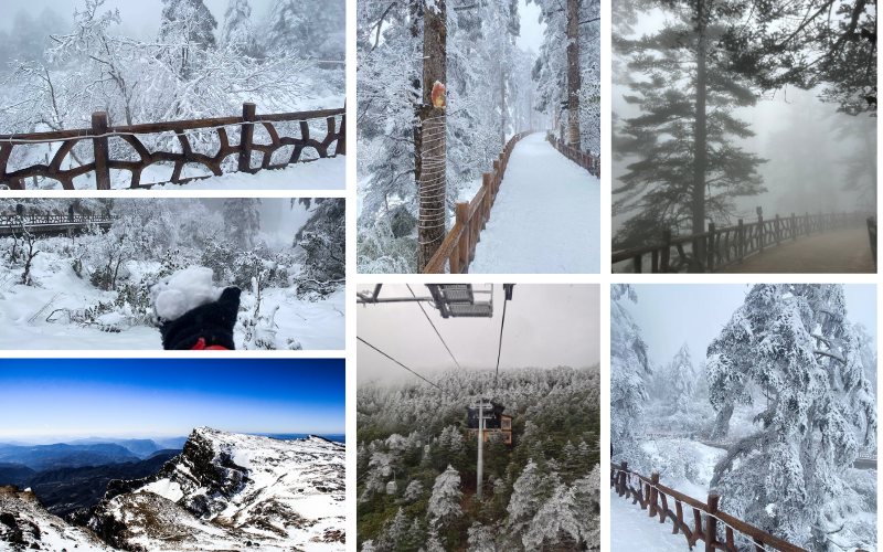วิวที่นี่คือ “สวรรค์ฤดูหนาว” ที่รวมทั้งภูเขาหิมะ ทะเลเมฆ และต้นสนเกล็ดน้ำแข็งในที่เดียว