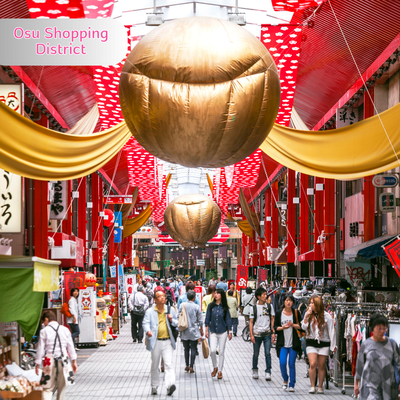 นักช้อปและสายสตรีทฟู้ดต้องมาเยือน ย่านโอสุ แหล่งช้อปปิ้งชื่อดังที่รวมเอาร้านค้าแฟชั่น คาเฟ่ และร้านอาหารพื้นเมืองมากมาย 🤩 ที่นี่คุณจะได้ลิ้มรสเมนูท้องถิ่นอย่าง “ฮิตสึมาบุชิ” (Hitsumabushi) ข้าวหน้าปลาไหลย่างขึ้นชื่อของนาโกย่า รวมถึง “เทบาซากิ” (ปีกไก่ทอดรสเข้มข้น) ที่กินแล้วติดใจ ย่านนี้ยังมีบรรยากาศครึกครื้นเหมาะสำหรับการเดินเล่นชิลๆ พร้อมถ่ายรูปสวยๆ เก็บเป็นความทรงจำ