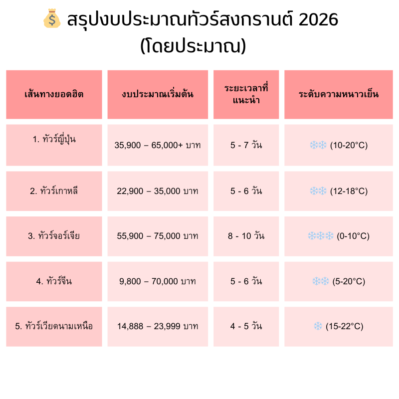💬 ติดต่อสอบถามโปรแกรมทัวร์สงกรานต์ 2026 ได้ที่: