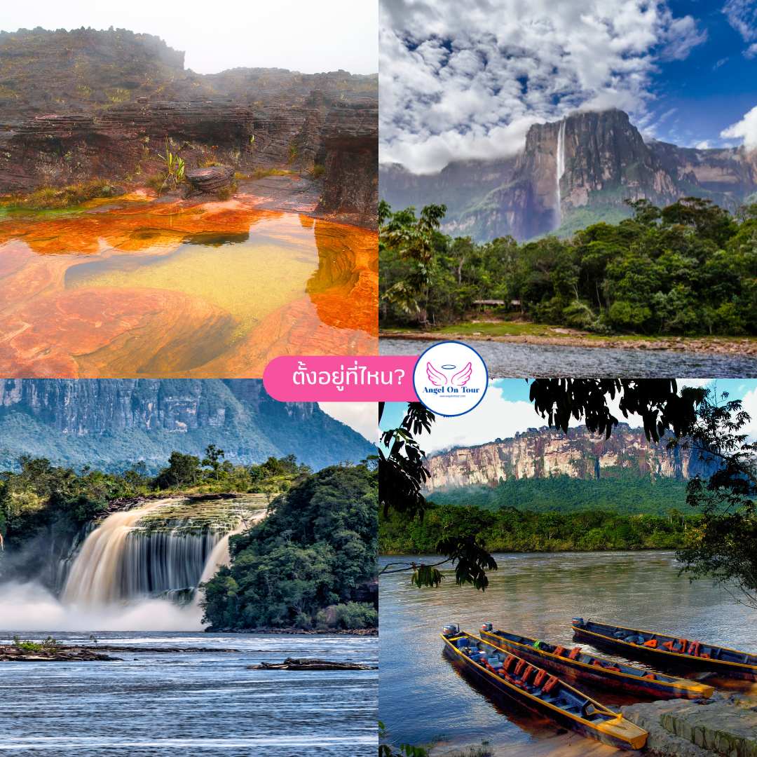 Angel Falls ตั้งอยู่ใน อุทยานแห่งชาติกานาอิมา (Canaima National Park) รัฐโบลิวาร์ (Bolívar) ทางตะวันออกเฉียงใต้ของเวเนซุเอลา ซึ่งเป็นพื้นที่ป่าดิบชื้นและภูเขาหินรูปร่างประหลาดที่เรียกว่า “เทปลู (Tepui)”