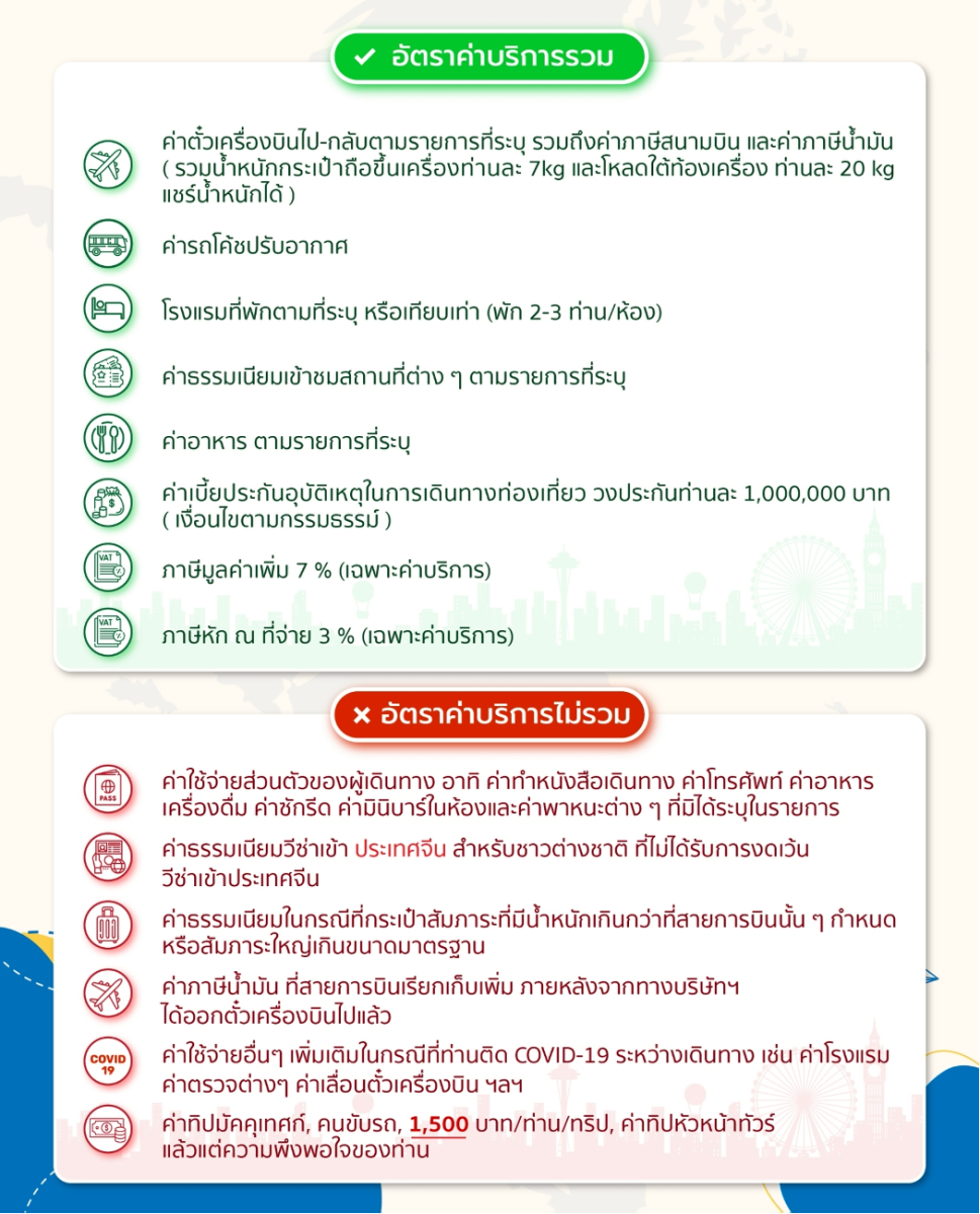 หากท่านต้องการจอง OPTION ผ่านทางบริษัทฯ ต้องแจ้งล่วงหน้าอย่างน้อย 7 –15 วันก่อนการเดินทาง