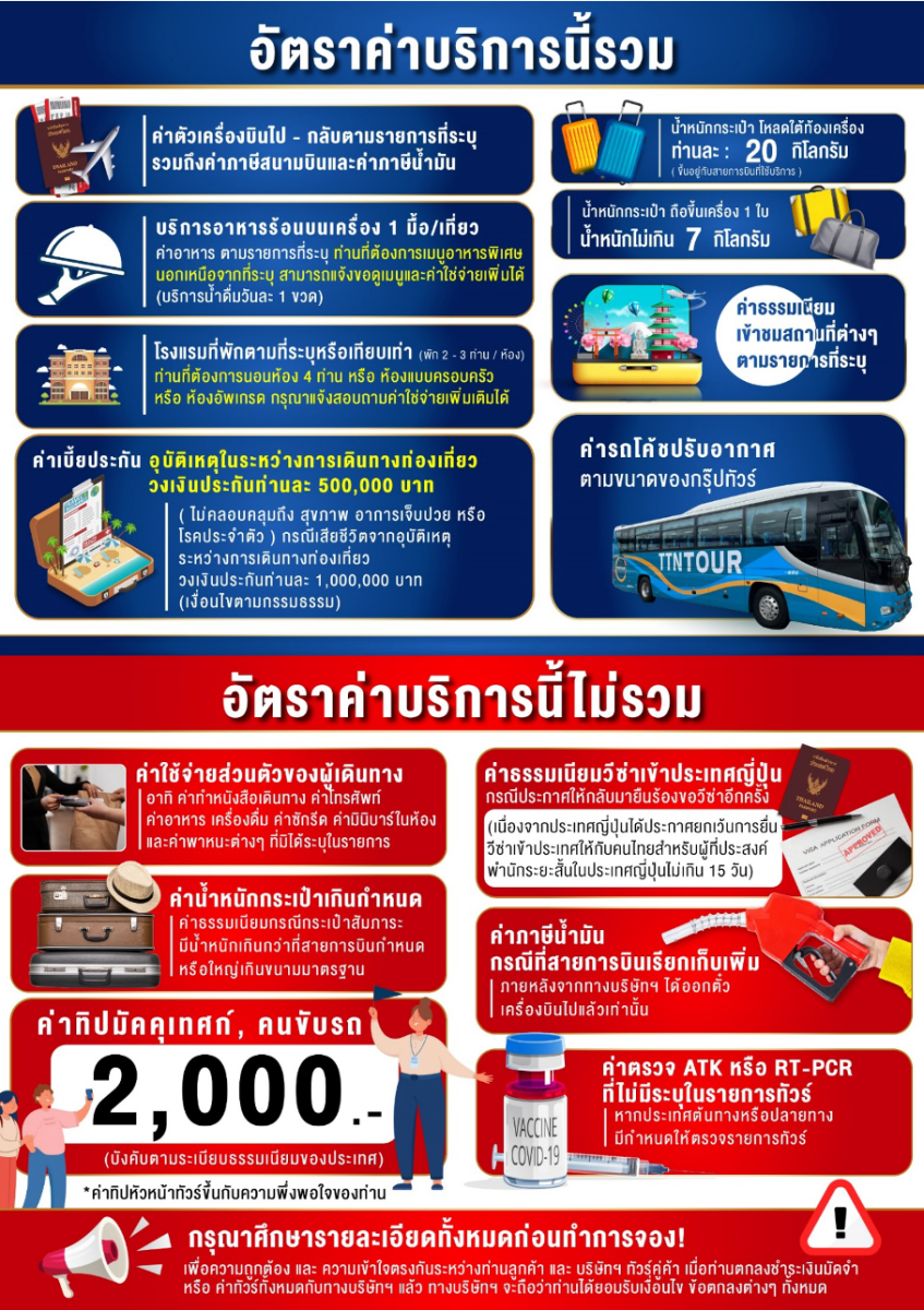 (ราคาทัวร์ไม่รวมค่าเช่าอุปกรณ์และชุดสำหรับเล่นกิจกรรมต่างๆ)