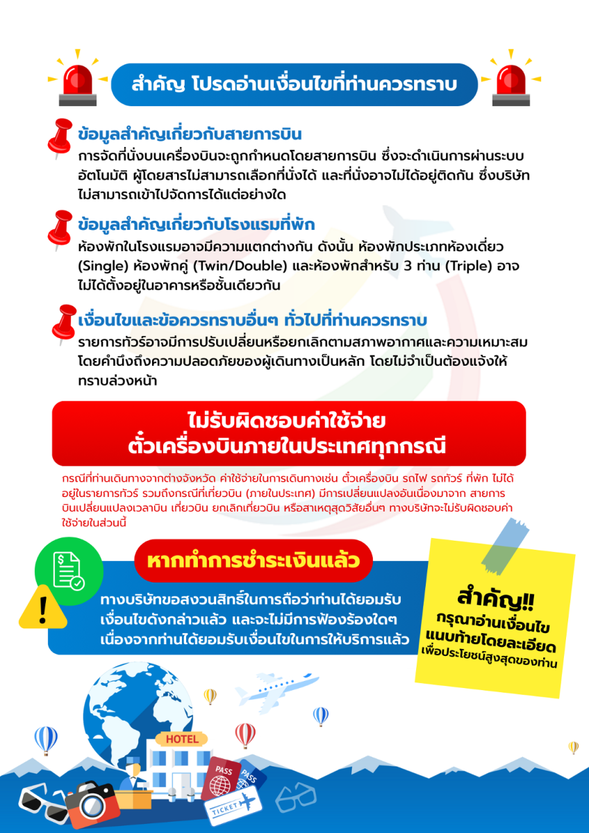 * เพื่อให้ท่านได้สนุกสนานอย่างเต็มที่จึงไม่มีบริการอาหารกลางวันและอาหารค่ำ *