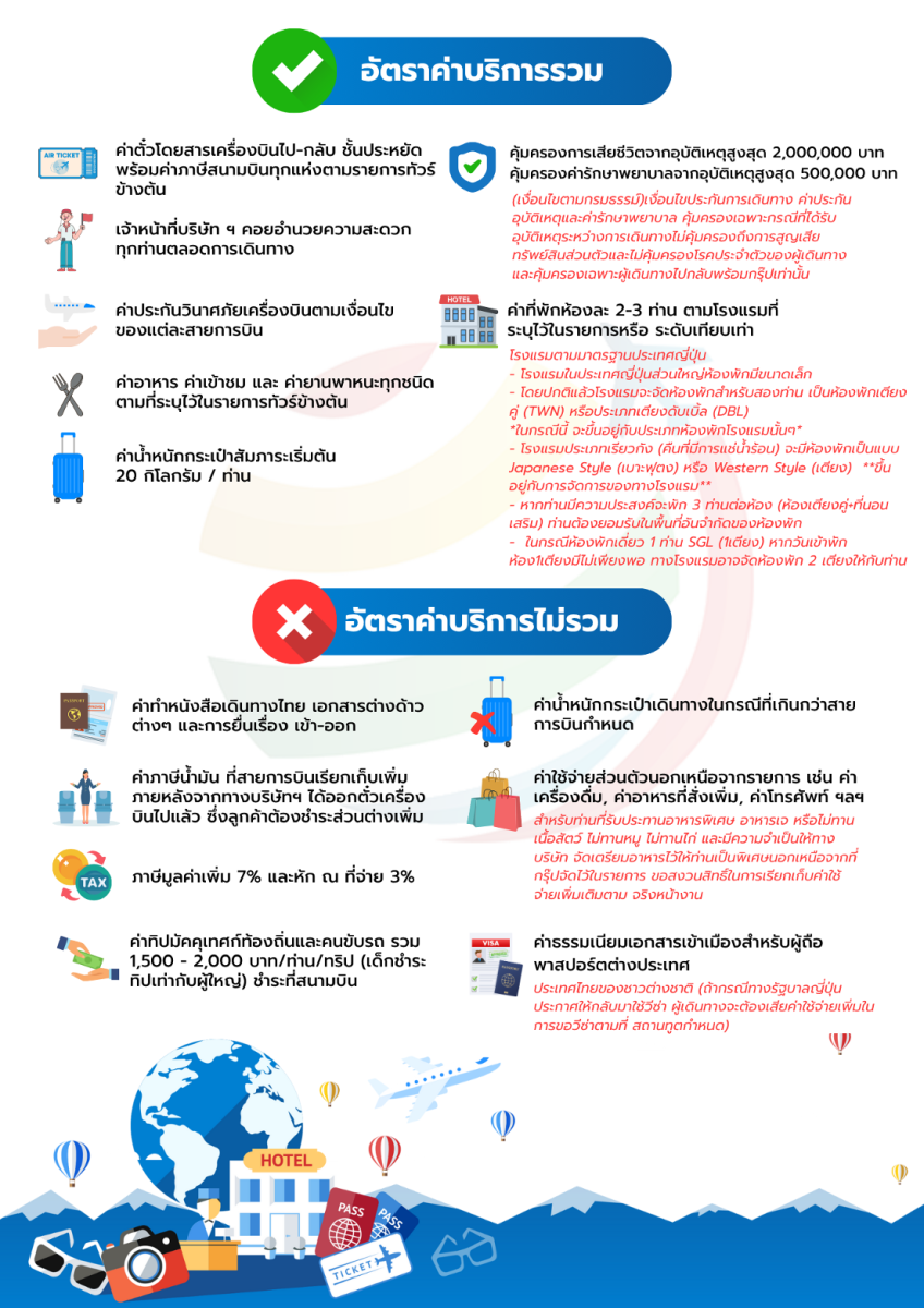 หมายเหตุ: ในกรณีที่ลานสกีเข้าไม่ได้เนื่องจากสภาพอากาศ บริษัทฯ ขอสงวนสิทธิ์เปลี่ยนโปรแกรมทัวร์ หรือบริษัทฯ ขอสงวนสิทธิ์เปลี่ยนโปรแกรมทัวร์เป็น Fuji Visitor Center ซึ่งท่านสามารถศึกษาความเป็นมาของภูเขาไฟฟูจิและเลือกซื้อของที่ระลึกเกี่ยวกับภูเขาไฟฟูจิได้ และยังเป็นจุดถ่ายรูปกับภูเขาไฟฟูจิได้สวยงามในช่วงฤดูหนาว