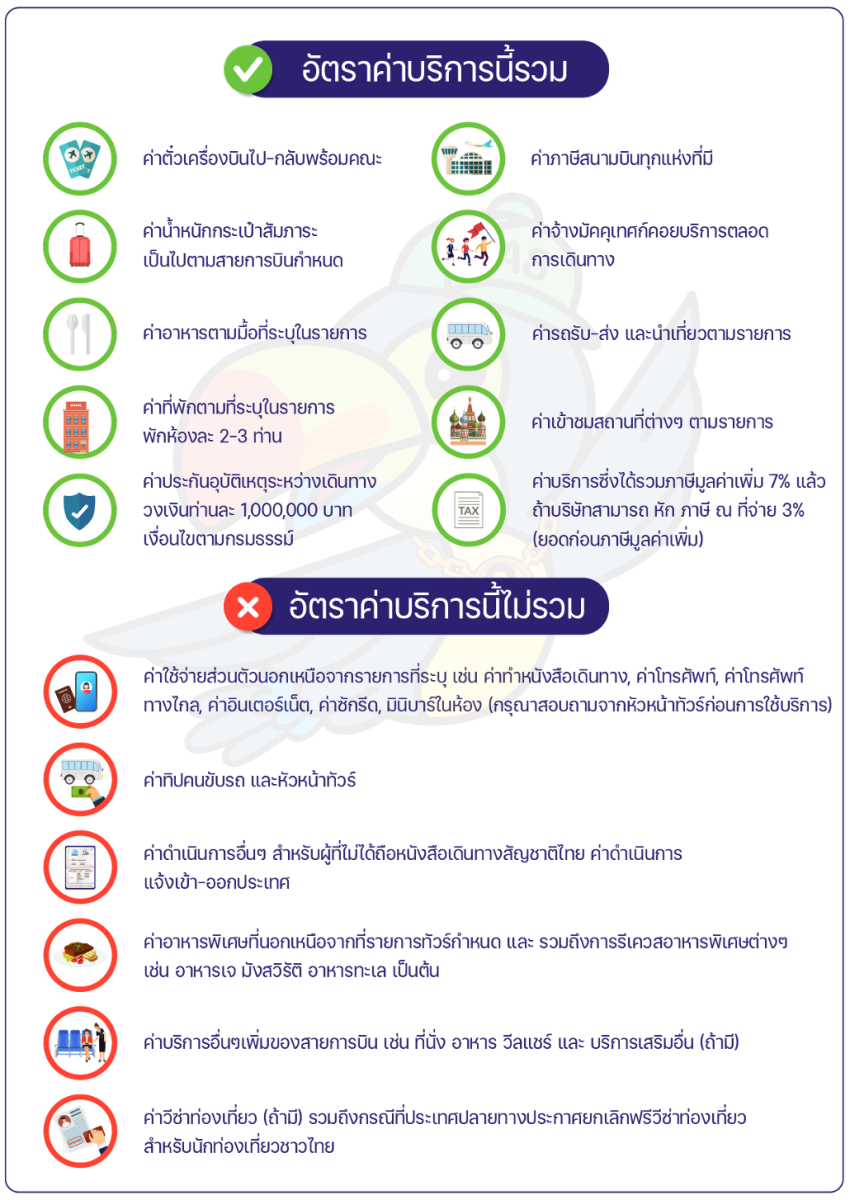 ** เพื่อความถูกต้อง กรุณาตรวจสอบข้อมูลเดินทางและเงื่อนไขการชำระเงินกับทางเจ้าหน้าที่ฝ่ายขายทุกครั้ง