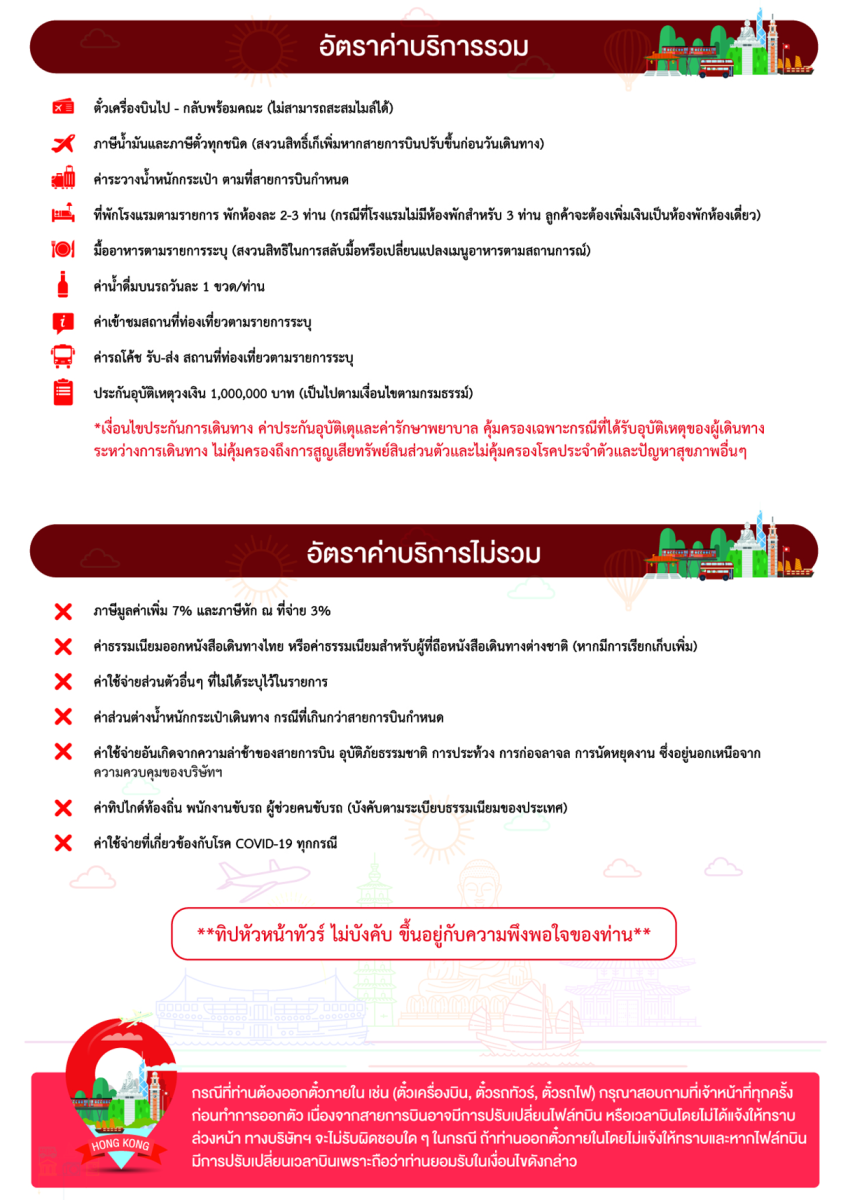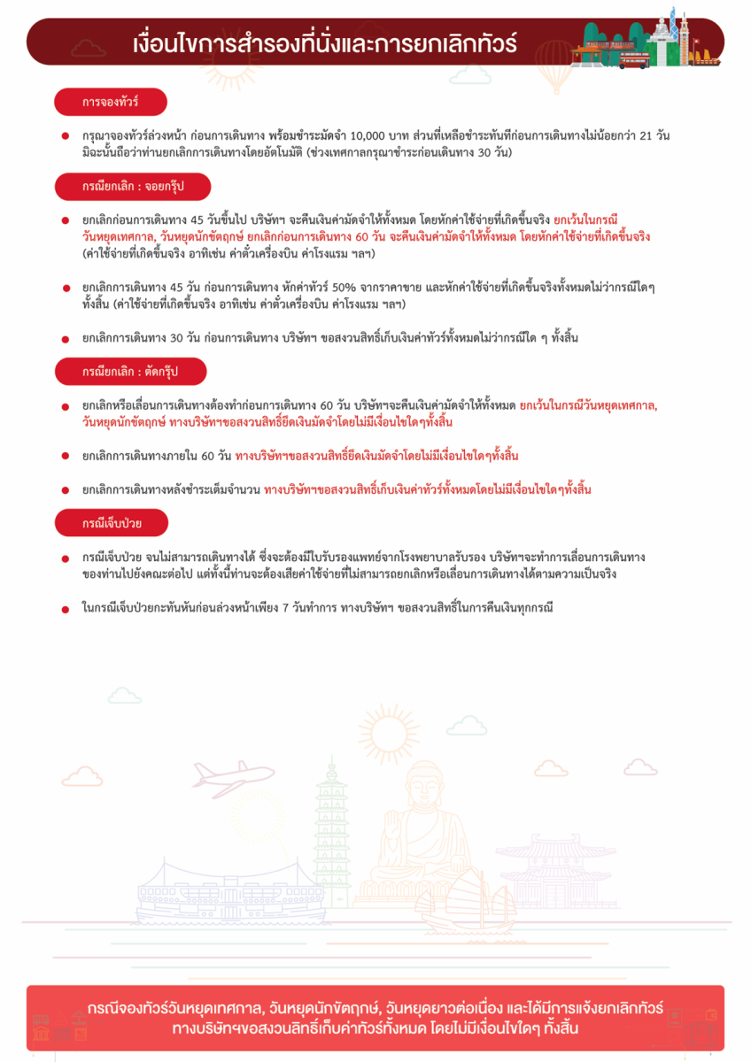 ** เพื่อความถูกต้อง กรุณาตรวจสอบข้อมูลเดินทางและเงื่อนไขการชำระเงินกับทางเจ้าหน้าที่ฝ่ายขายทุกครั้ง